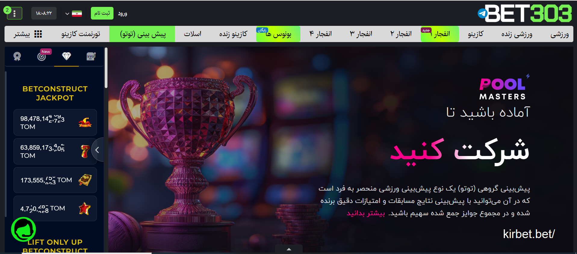 سایت بت 303 به عنوان یکی از سایت های ایرانی شناخته می شود که تلاش کرده با استفاده از پلتفرم بت کانستراکت ساختار نسبتا استانداردی ارائه دهد.